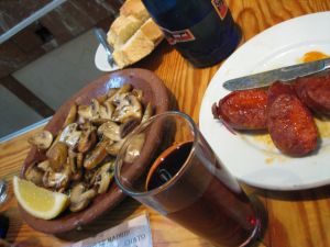 No dia seguinte, logo que o Valim chegou, com jet lag e tudo, já saímos nas tapas. Na Casa Toni, ao lado do hotel, tudo o que está na vitrine eles fazem na chapa. Provamos os sensacionais cogumelos e as linguicinhas chichurritas, que o PH tanto adora. São muito saborosas.