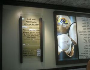 Decisão difícil, mas para mim, que adoro doce, o de tapioca era perfeito. Também adorei o de doce de leite flocado e me surpreendi com o de caipirinha – o sabor é bastante parecido com o da bebida. E a melhor parte? A placa que convida a todos a experimentar “quantos sabores quiser” antes de escolher.