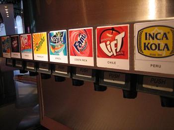 Obviamente não provei 64 refrigerantes ou não estaria aqui para contar. Experimentei Inca Kola, a Tubaína do Peru, que tem um sabor semelhante à nossa e uma coloração amarelo-fosforescente ‘bem natural’. Da mesma cor, a Fanta Kiwi-Maçã tailandesa tem um sabor agradável (foi a que mais gostei).