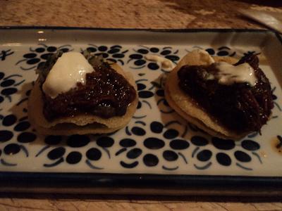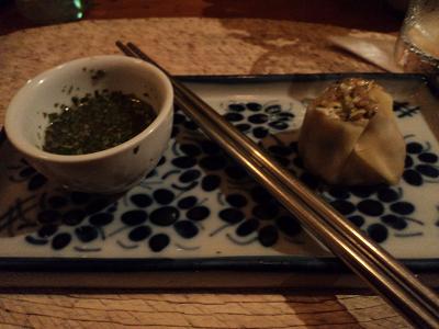 Depois um ótimo suco de tomate temperado no ponto certo (R$ 5,60) chegaram as entradas: delicadas trouxinhas thai (massinhas cozidas recheadas de vegetais, camarão e ervas aromáticas para degustar com molho refrescante cítrico, com um toque de coentro) e tostadas de barbacoa de cordeiro (mini tortillas crocantes de milho com uma pincelada de frijoles refritos e carne de cordeiro preparada devagarzinho ao estilo do norte do México). Ambas adoráveis causaram ótima impressão. Fiquei até triste porque são só duas por pessoa, mas pouco depois chegaram os pratos principais…