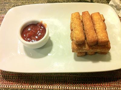 Para fechar a noite, a sobremesa foi até que surpreendente. Dava a impressão de batata frita com catchup, mas eram de Palitinhos de queijo de coalho crocante com uma porção de goiabada…. Hummmmm. Apesar de parecer bem simples (e é!) a combinação fica surpreendente!