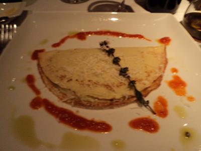 Nesta segunda edição da SPRW 2011, o cardápio promocional da casa, disponível somente no jantar (R$ 43,90), começa com o ‘Crespelle al pesto’. Acabei de saber no perfil da @Percussi que o delicioso crepe com creme de manjericão e molho de tomates foi resgatado do cardápio de 25 anos atrás. Outra opção de entrada é a ‘Pizza Pazza’, massinha de pizza crocante com berinjelas, tomate seco e queijo de cabra.
