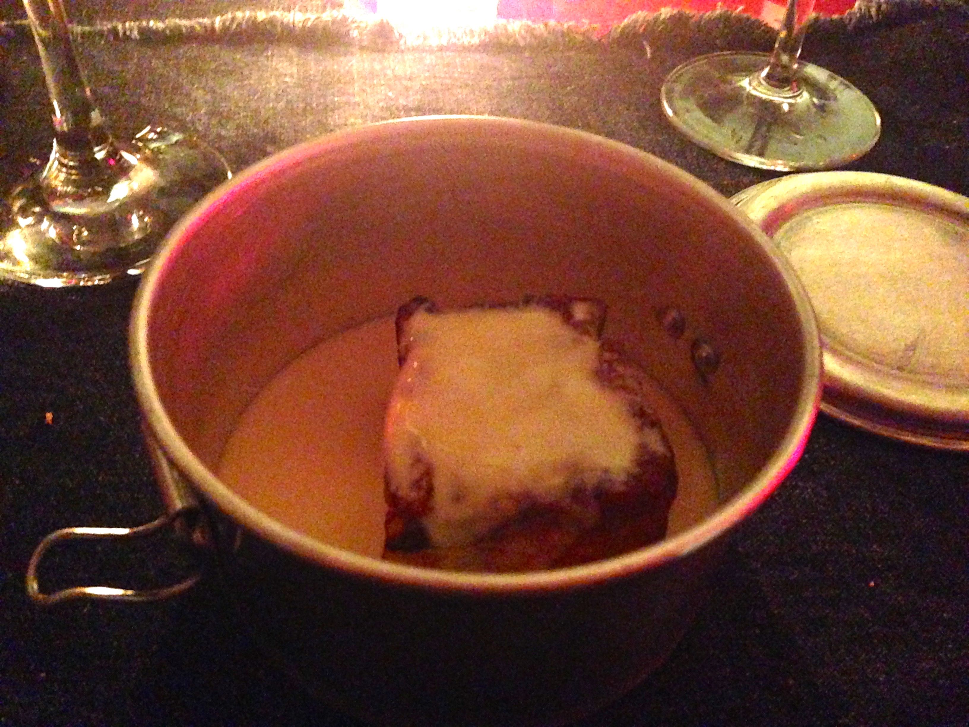 Por fim, quando você acha que já descobriu tudo do jantar secreto, vem a sobremesa. Primeiro, todos recebem marmitinhas de alumínio fechadas e suas taças são servidas com a trappiste Gregorius, escura e potente (9,8% de grau alcóolico). E então o chef dá “ok” para abrirmos as marmitas e descobrirmos a rabanada de brioche, sua versão da memória natalina, com calda de creme e cumaru, a baunilha da Amazônia. Enquanto servia a calda em um bule, Gustavo falava da manteiga de pistache, que você vai descobrindo quando passa a colher no fundo da marmita. E a cerveja dos monges só intensifica os sabores. O resultado é divino e você não quer que acabe.