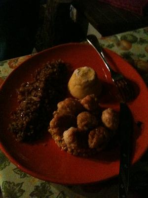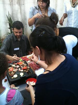 Entre as receitas que provei estavam escabeche de sardinha em polenta italiana grelhada, pernil derretendo com tomates assados, guacamole feita na hora, carnes e legumes grelhados à moda japonesa, ou yaki nikku (o ‘churrasco com hashi’).