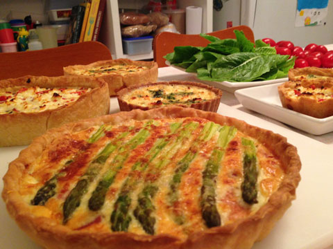 Me lembro também da primeira vez que provei as tartes, no ano passado. A Kay tinha feito pesquisas, cursos técnicos, criado um conceito e montado uma cozinha pró em casa. E lá estava a mesa cheirosa e colorida com tartes de aspargos com parma, de queijo de cabra com shitake e de espinafre. Fiquei impressionada com a consistência, macia, com o recheio farto e o equilíbrio de sabores.