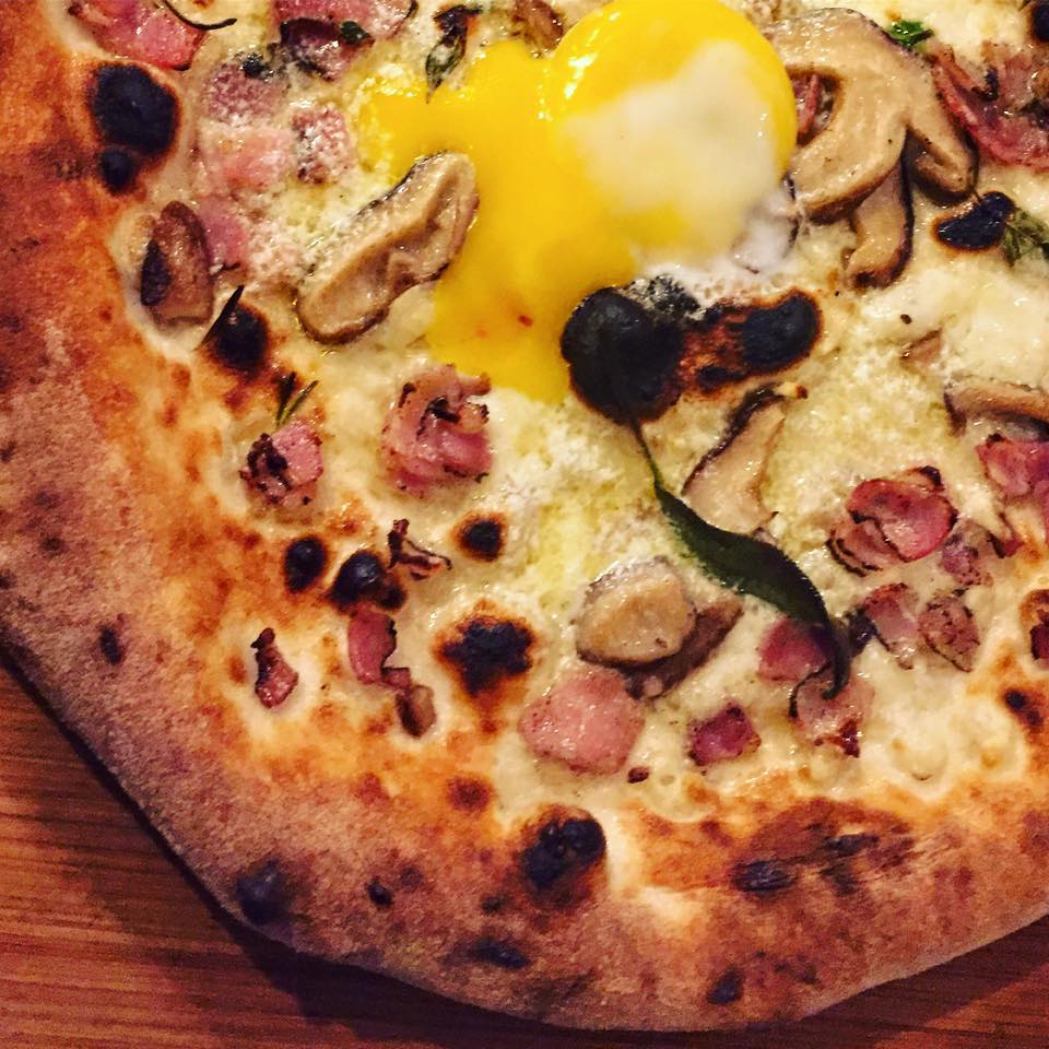 Pizza do mês da Napoli Centrale, a partir de quinta (18/8), tem mascarpone, pancetta, cogumelos e ovo estrelado. Foto: Facebook/Napoli Centrale