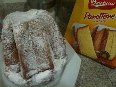 A embalagem inclui um saquinho de açúcar de confeiteiro com essência de baunilha. Basta despejar o açúcar no saco plástico que embrulha o panetone, chacoalhar e a cobertura padrão está pronta.