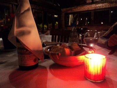 Felizes da vida com nossa aventura, voltamos ao restaurante para jantar no sábado, à luz de velas. A sugestão da chef, que foi nossa escolha, a própria Isabelle faz questão de explicar aos comensais: confit de coxa de pato marinada por 24 horas com temperos e vinho (R$ 54, a média de preço dos pratos ´carro-chefe´ da casa).