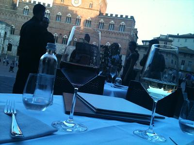 Siena é um convite à 'dolce vita'. Entardecer na Piazza Del Campo, uma taça de Brunello di Montalcino e outra de pinot grigio