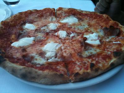Os restaurantes e bares ao redor são bem turísticos e caros, mas não resisti a uma pausa para relaxar e apreciar a vista. Por lá dividimos uma saborosa pizza com presunto speck e mascarpone (10 euros) e duas taças de vinho (Brunello di Montalcino e um refrescante pinot grigio). Valeu a pena.