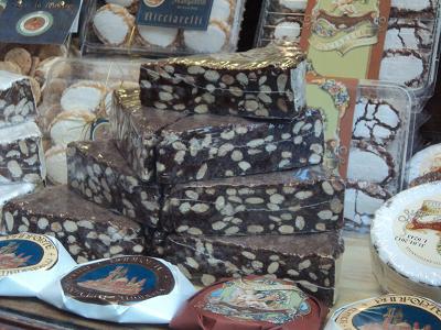 A culinária local é vasta e deliciosa. Começamos por um jantar na Trattoria Fonte Giusta, localizada na rua Camollia, onde estão as principais lojas da cidade. Entre elas, tentadoras vitrines de massas, vinhos e doces como a torta de frutas e castanhas Panforte, uma especialidade local (as docerias vendem embalagens pequenas de diferentes sabores para presente. Não deixe de trazer).