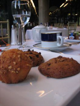Na chegada, o chef Thomaz Leão já iniciava uma performance. Usando como base uma frigideira wok invertida sobre um fogareiro portátil, ele preparava uma versão do pão indiano naan, que é assado nas bordas internas do forno Tandoor. Boa idéia para quem quiser se arriscar a fazer um naan em casa. E naan ao contrário também dá naan, mas versão que degustamos tinha fermento (a massa básica do naan leva trigo, sal e uma pitada de açúcar). Menos crocante, mas saborosa.
