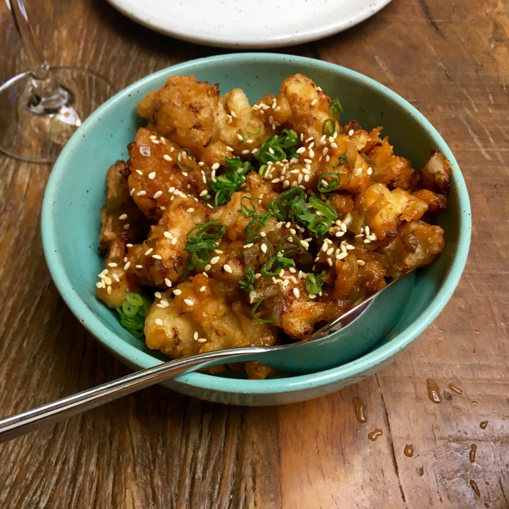 A Couve-flor Manchurian, que me deixou curiosa desde que vi a foto no Instagram, é realmente imperdível. Sempre achei que couve-flor nasceu pra ser feita à milanesa, ainda mais com esse molho indo-chinês meio picante a base de shoyu, cebola e pimentão picadinhos (R$ 36). Caso você não morra de amores por essa simpática hortaliça, essa é a chance de mudar de ideia.