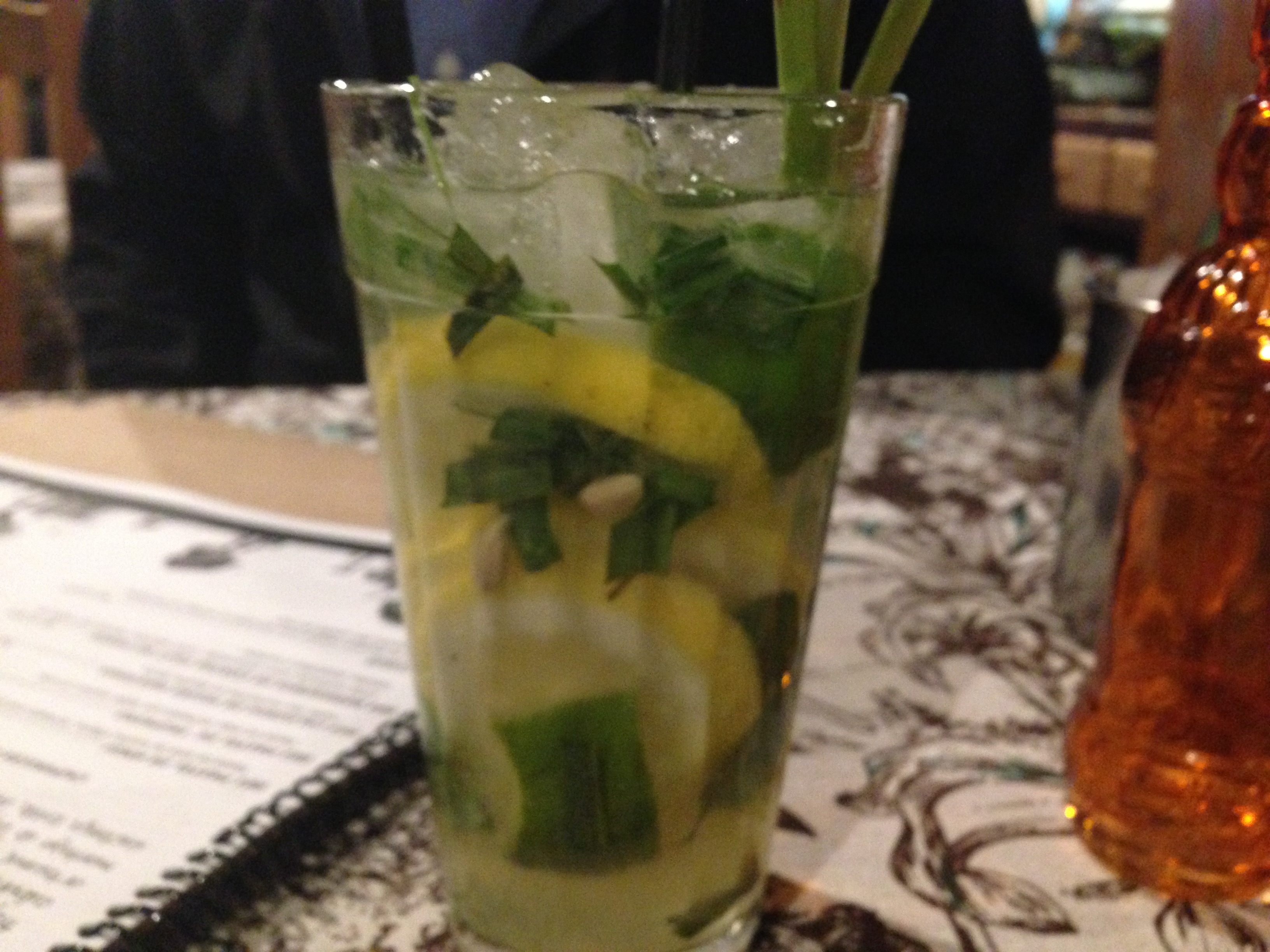 O principal foi o Matuto, delicioso ensopado de feijão manteiga e carne de costela (R$ 39,90) com farofinha de milho. Para completar, pedi uma couve refogada. As porções são bem servidas e rolam até para três pessoas. E tem opção para os vegetarianos: Moquequinha de palmito fresco e banana da terra, com vinagrete de pimenta de cheiro e arroz.
