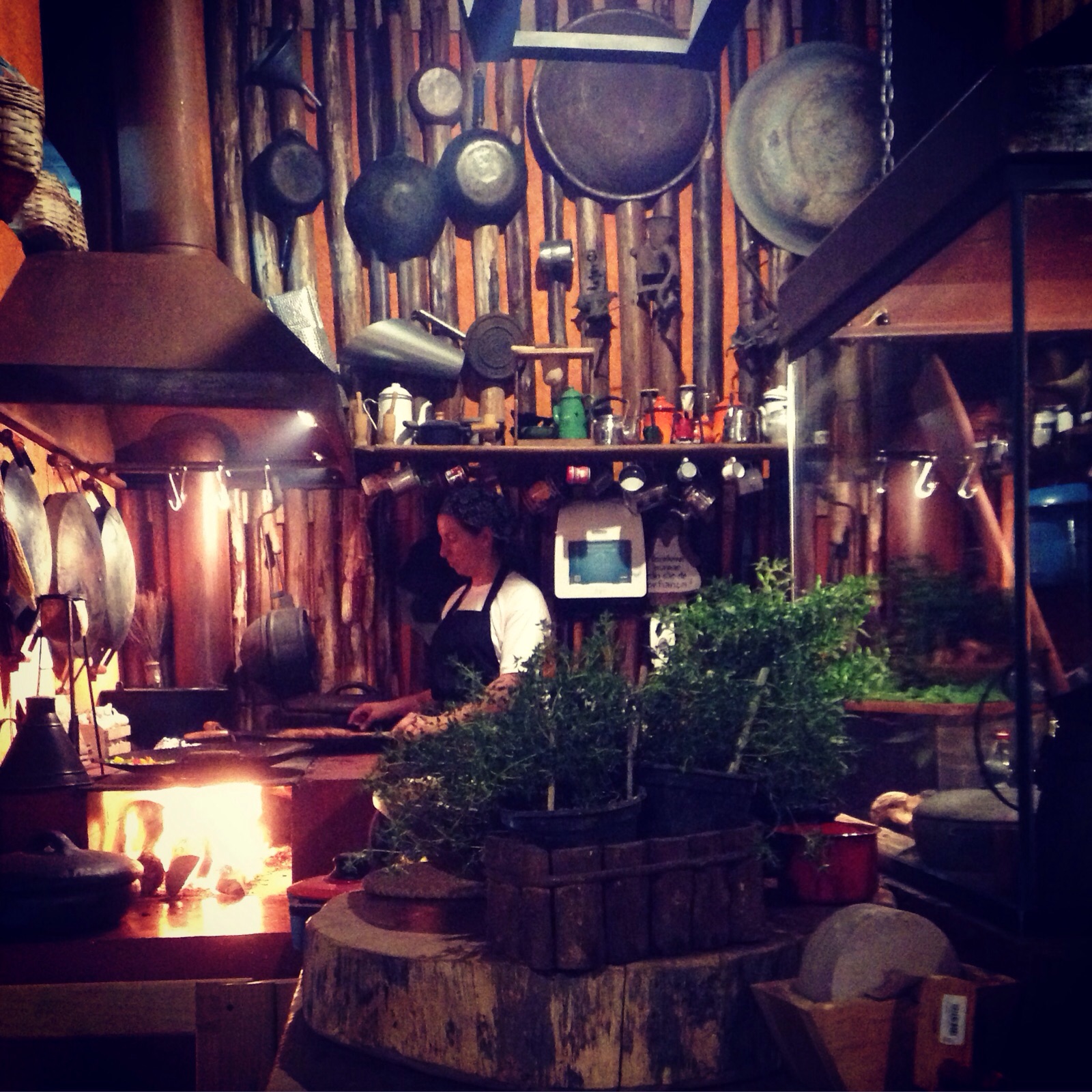 O Braun Café esteve por lá esta semana para conhecer o restaurante em fase de teste. Na entrada, você já sente o aroma do fogão à lenha em uma cozinha aberta onde a chef capixaba, que deixou -Garimpos do Interior, prepara o rojão (espeto gigante de carne suína, R$ 39,90), milho assado (R$ 5,50) e pratos feitos no disco de arado. “Quando a roda de ferro perde o corte é usada na cozinha. Vira um frigideirão”, ela conta enquanto dá um agito da cozinha.