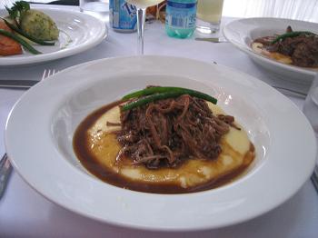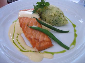 Na entrada, o destaque foi a salada com vinagrete de camarão e papaia acompanhando chips de batata doce. Entre os pratos principais, o salmão ao molho holandês estava bem macio, embora o pessoal da cozinha tenha deixado algumas espinhas de brinde, e as batatas ao garfo, com um toque de limão, são uma boa ideia de acompanhamento. O vencedor, no entanto, foi a costela a bourguignone (provavelmente cozinha horas e horas até derreter ao molho de vinho) com polenta mole, que estava muito saborosa, derretendo na boca.