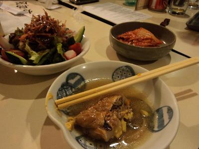 O banquete começou com uma saladinha de alface, cenoura ralada e kani, com o molho especial do Taka. Naquele momento entendi porque o Gui gosta tanto de salada. Na sequência, acelgas cozidas em um tempero picante e muito saboroso chegaram para acompanhar os grelhados.