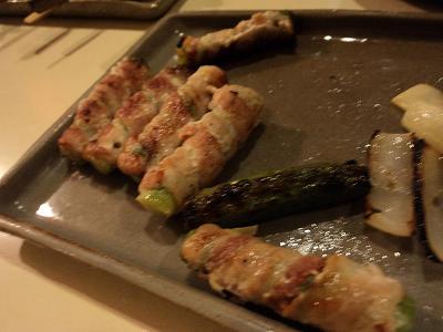 Entre os variados espetinhos, os preços das variedade de carnes de frango vão de R$ 3,95 a R$ 4,50 a unidade. Os espetos de legumes variam de R$ 3,60 (quiabo) a R$ 5,90 (aspargos com bacon) e o de ostras grelhadas sai por R$ 18,60. Gostei muito das robatas de ovos de codorna, tomate cerveja enrolado em bacon (criativo e delicioso), quiabo (vale lembrar que, há uns quatro anos, eu não comida quiabo nem com o melhor molho do mundo), frango e o campeão: aspargos com tirinhas de bacon.