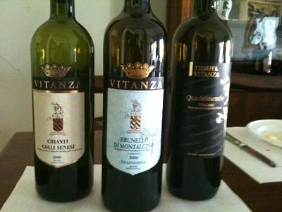 Na sequência são degustados três vinhos da casa: Chianti Colli Senesi (‘Colinas de Siena’), Brunello di Montalcino ‘Tradizione’ e Super Toscano ‘Quandrimendo’ Vitanza. Este último é elaborado com 50% Sangiovese e 50% Merlot, uva preferida de Rosalba Vitanza, segundo sua sobrinha Lilian, que está entre os seleto grupo de dez funcionários da vinícola.